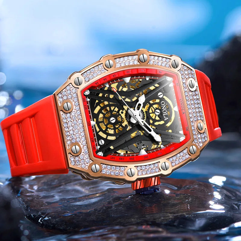 O mostrador esqueleto deixa o movimento mecânico à vista, como se cada engrenagem expusesse os segredos do tempo. É a antítese da pressa: o tempo aqui não se esconde, ele desfila.
