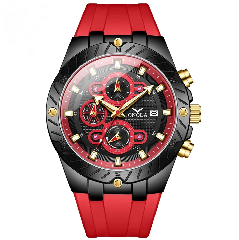 O mostrador exibe múltiplas camadas de leitura, com cronômetro funcional, ponteiros com luminosidade noturna, e um design que lembra painéis esportivos, pronto para quem transforma metas em marcos.